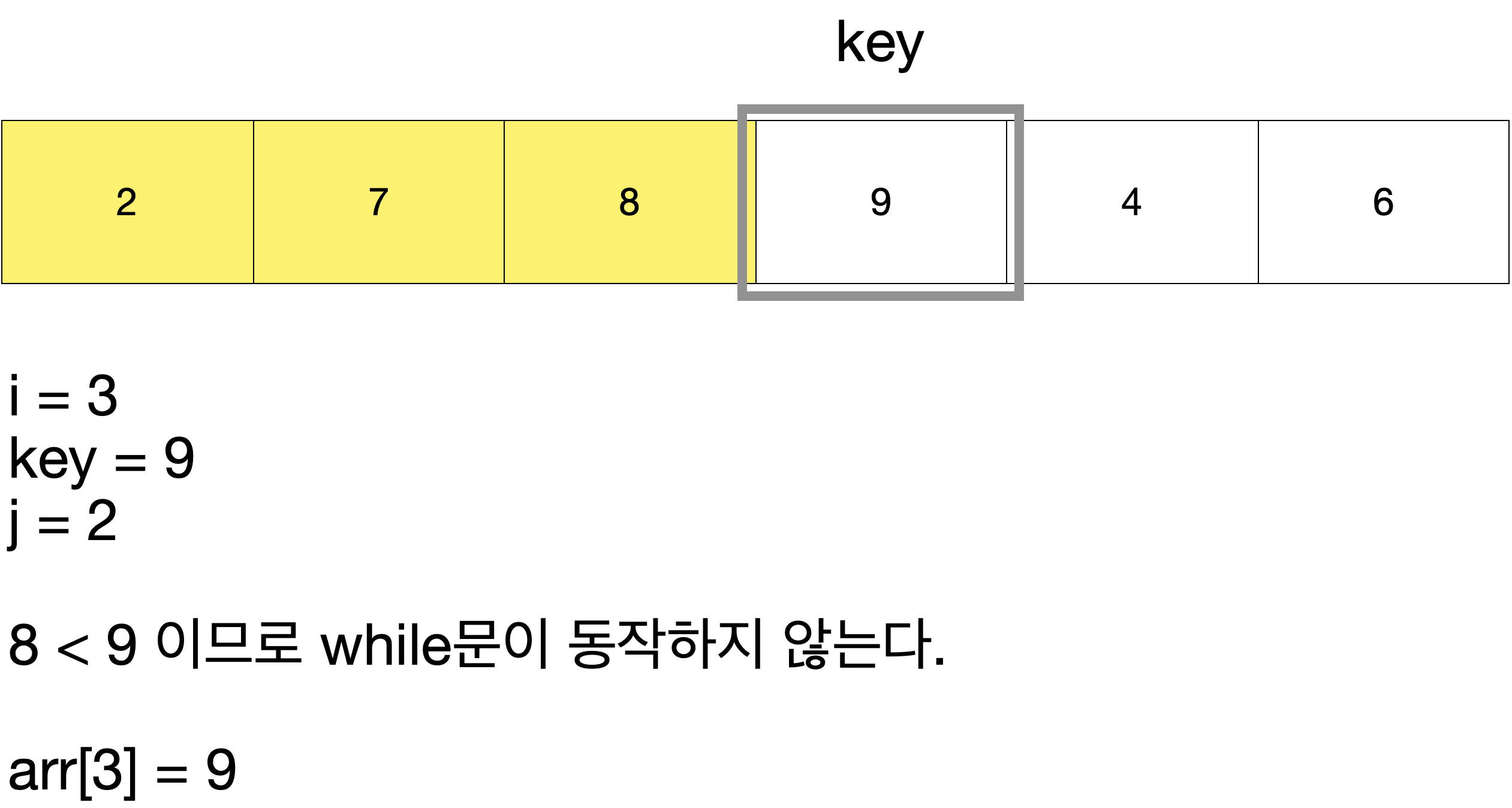 arr[j + 1] = key // 올바른 위치에 key 삽입